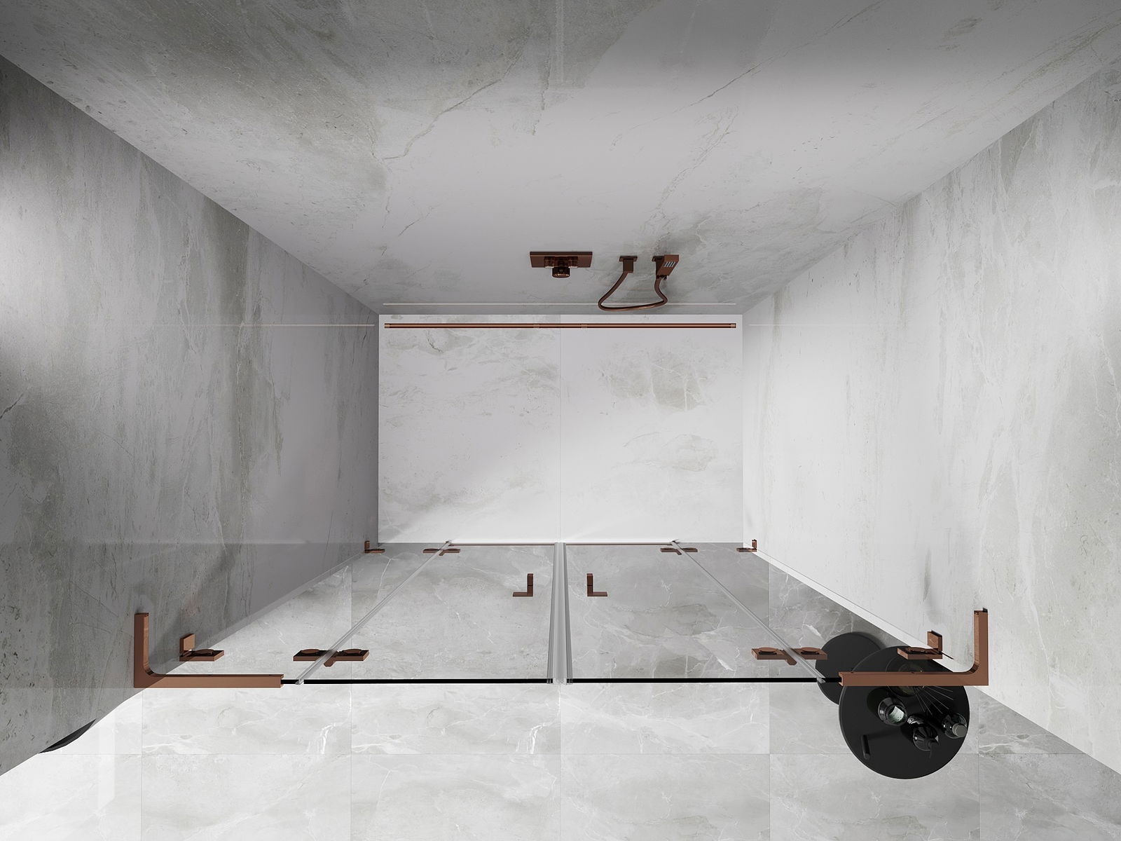 Mexen Lunar L Duo drzwi prysznicowe uchylne 150 cm, transparent, różowe złoto - 834DL-150-000-60-00