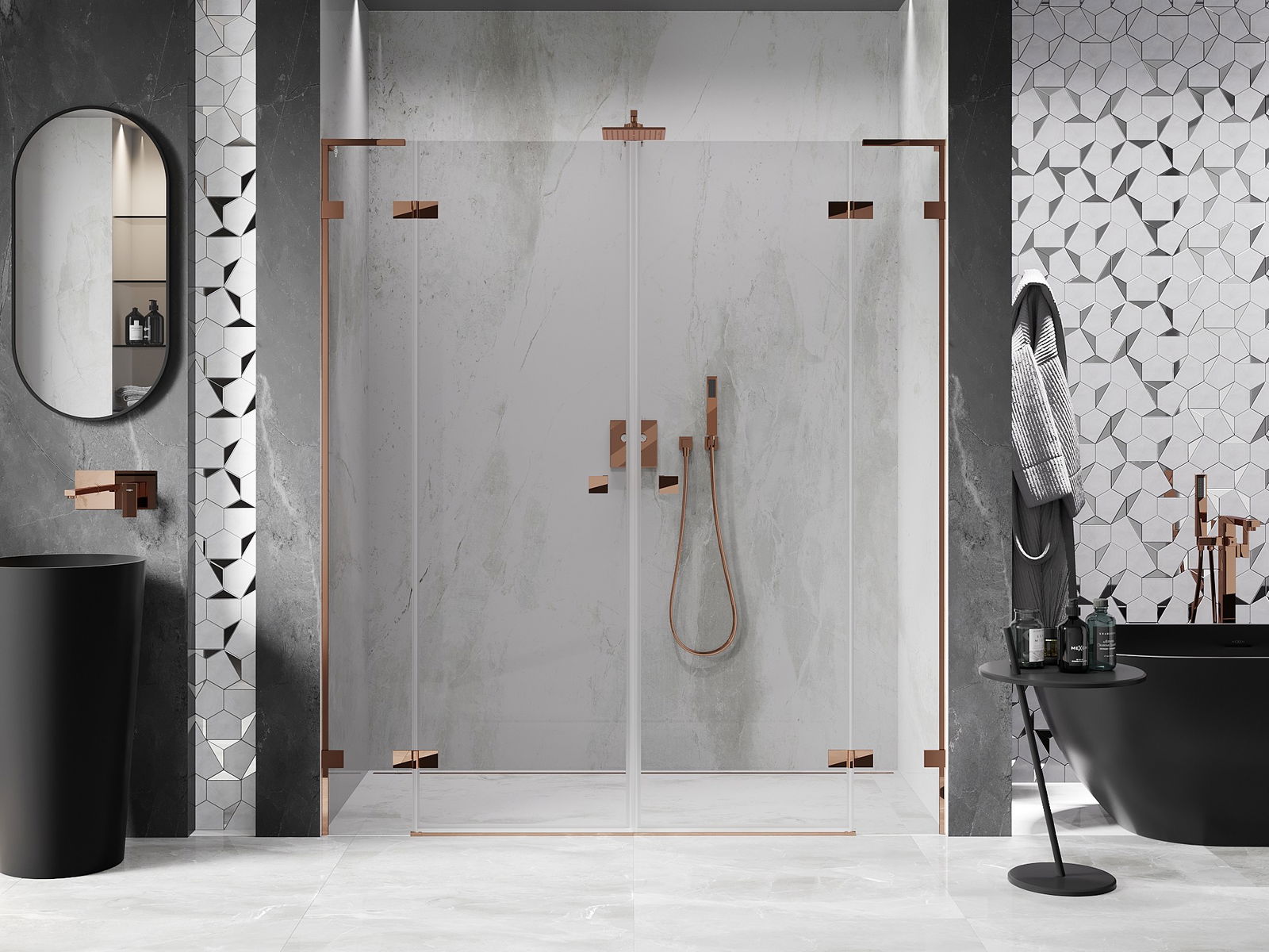 Mexen Lunar L Duo drzwi prysznicowe uchylne 170 cm, transparent, różowe złoto - 834DL-170-000-60-00