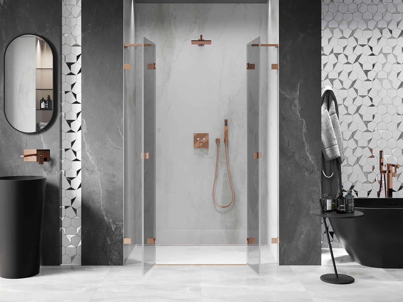 Mexen Lunar L Duo drzwi prysznicowe uchylne 150 cm, transparent, miedź szczotkowana - 834DL-150-000-65-00