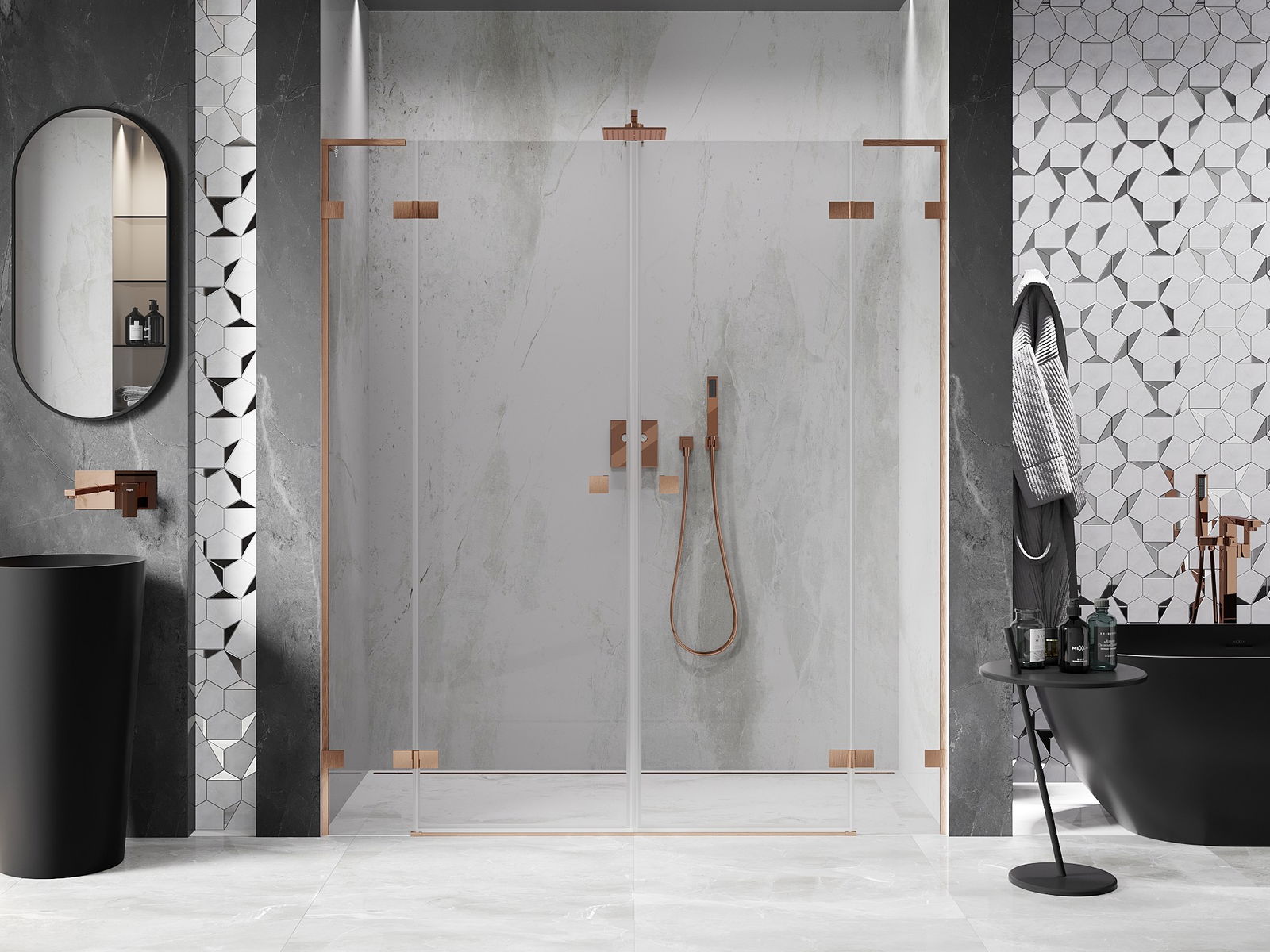 Mexen Lunar L Duo drzwi prysznicowe uchylne 170 cm, transparent, miedź szczotkowana - 834DL-170-000-65-00