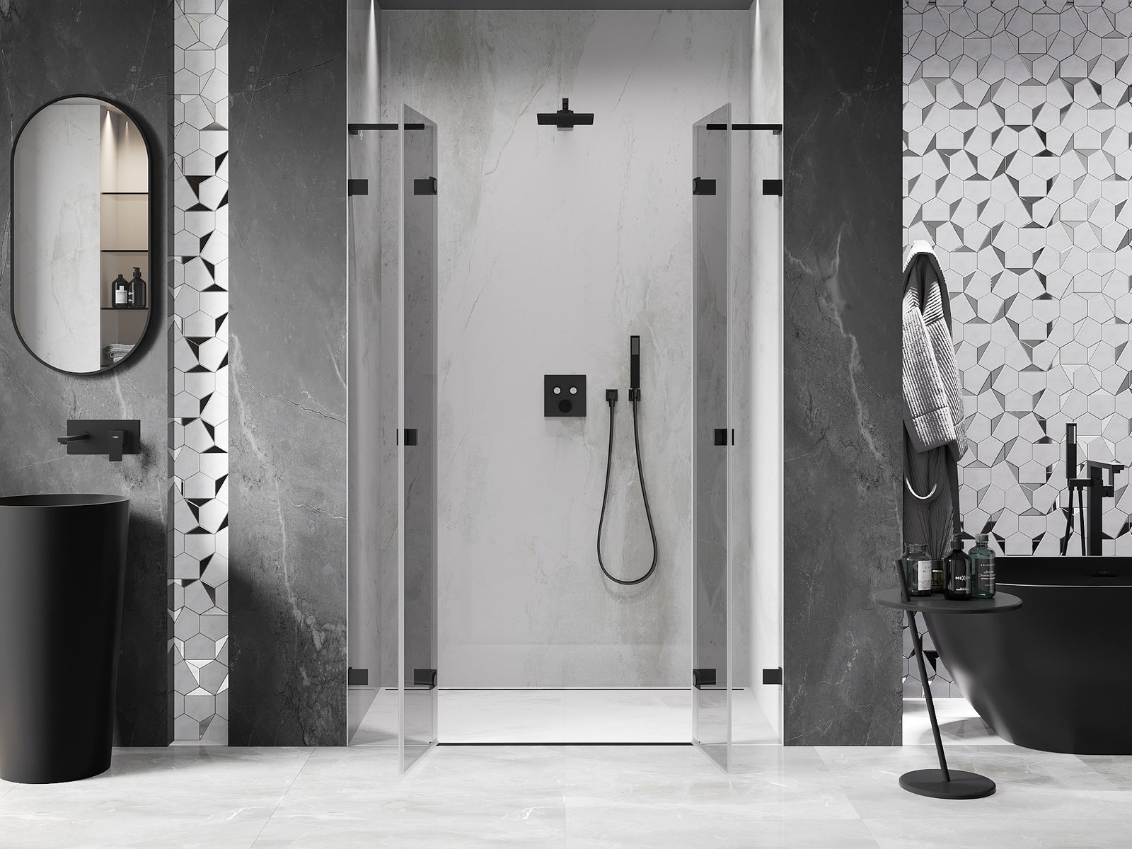 Mexen Lunar L Duo drzwi prysznicowe uchylne 140 cm, transparent, czarne - 834DL-140-000-70-00