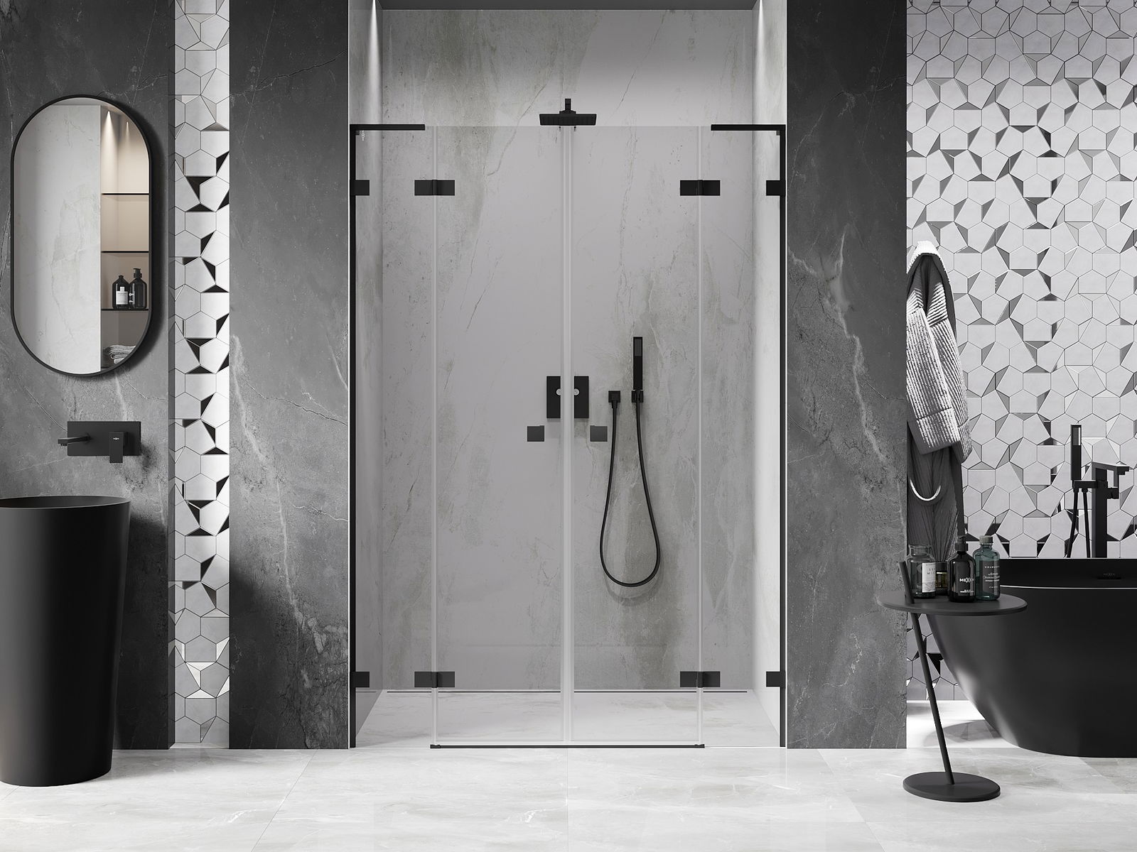 Mexen Lunar L Duo drzwi prysznicowe uchylne 160 cm, transparent, czarne - 834DL-160-000-70-00