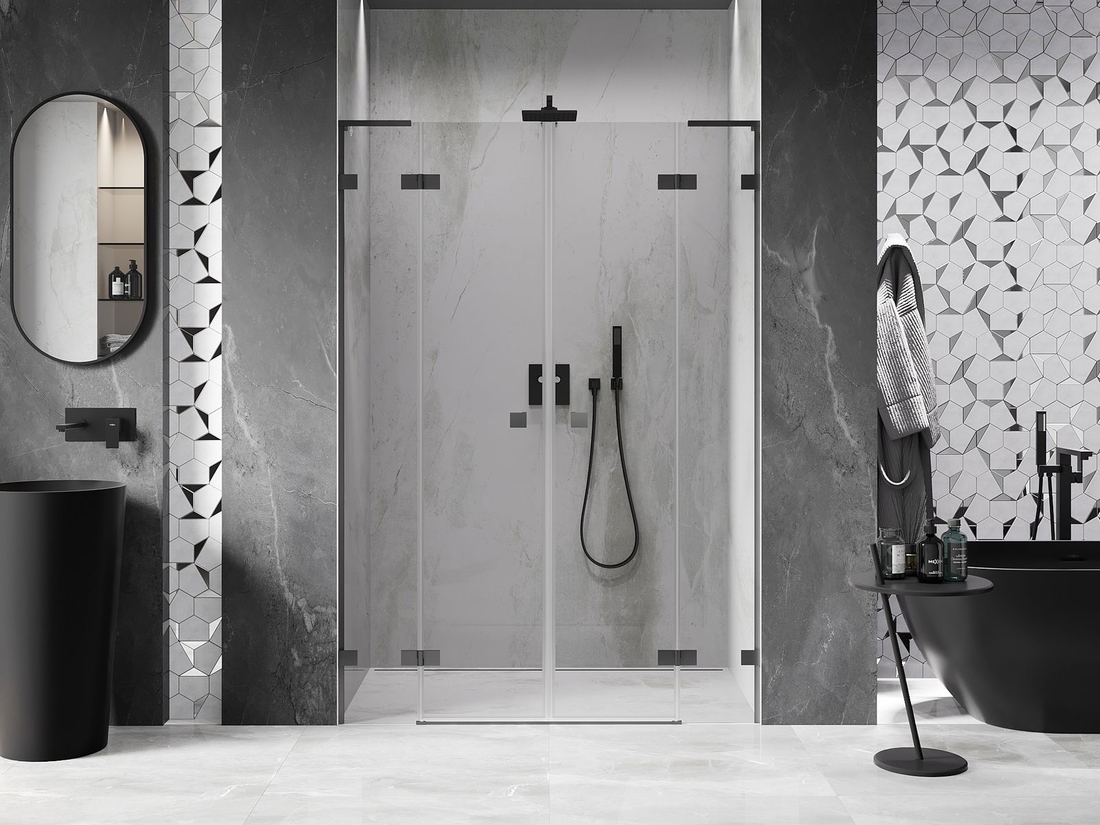 Mexen Lunar L Duo drzwi prysznicowe uchylne 140 cm, transparent, gun metal - 834DL-140-000-95-00