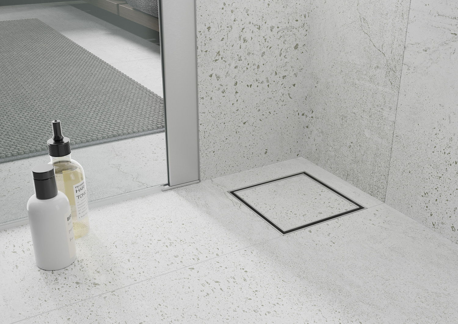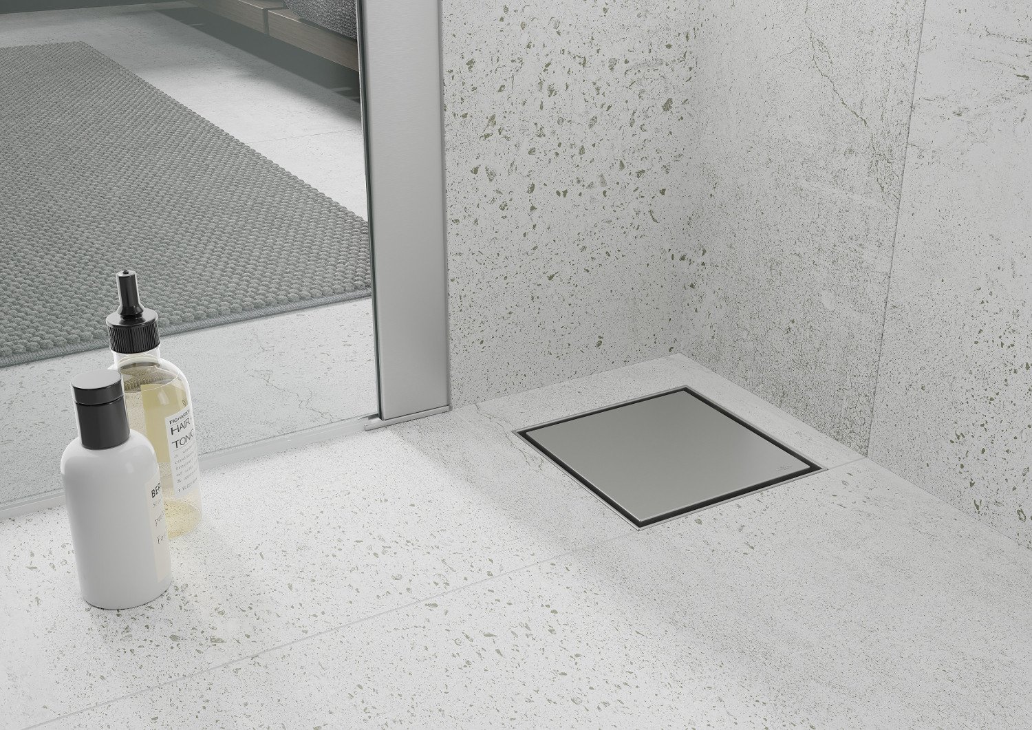 Dwustronna maskownica z możliwością obrócenia w każdym momencie pozwala na zmianę aranżacji. Z jednej strony znajduje się gładka stal nierdzewna, po odwróceniu maskownicę można zabudować płytkami, by tworzyła połączenie z podłogą.