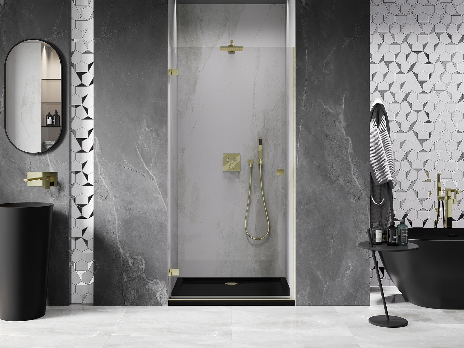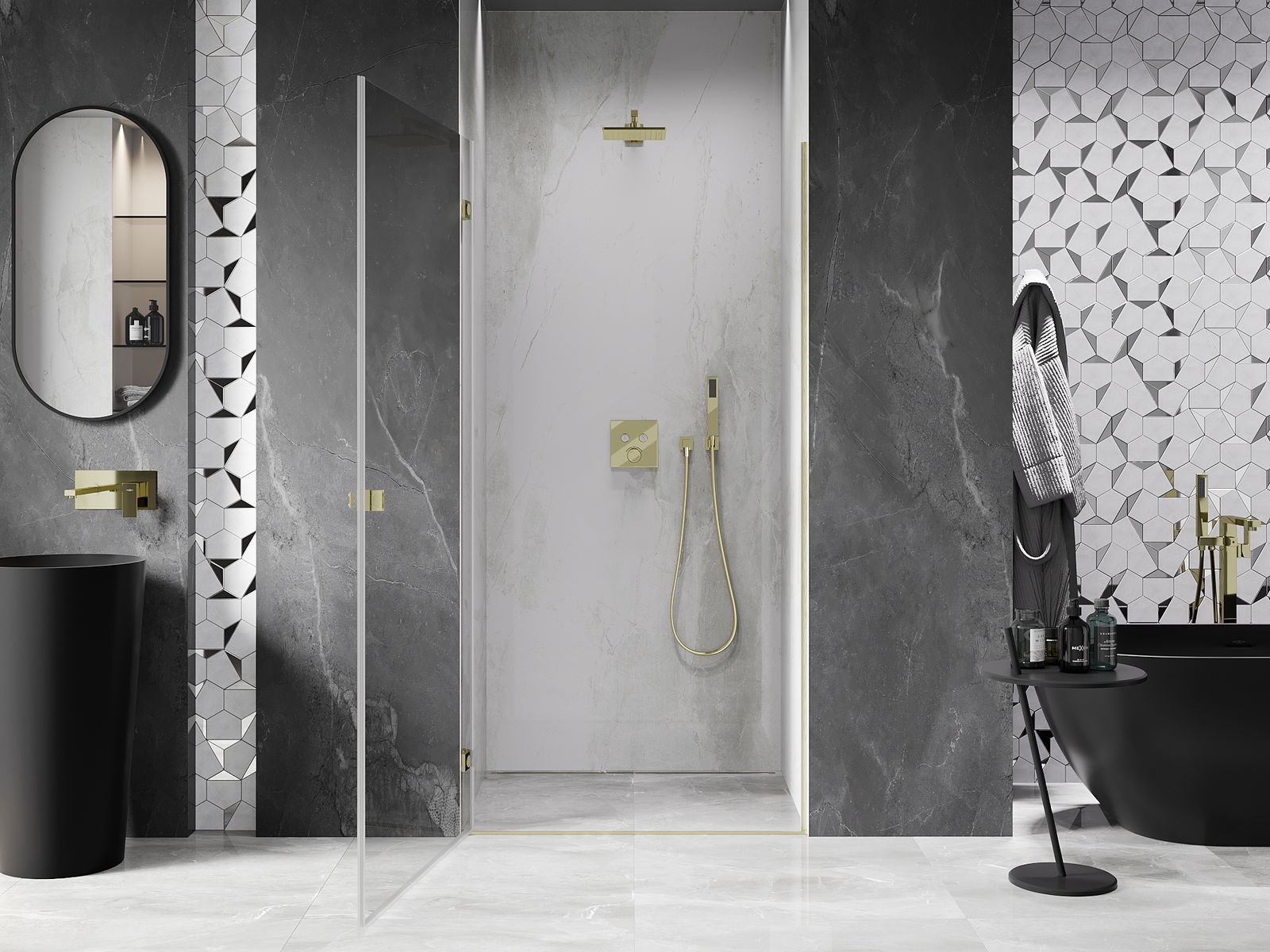 Mexen Lunar-B drzwi prysznicowe uchylne lewe 50 cm, transparent, złote szczotkowane - 832-050-000-55-00-L