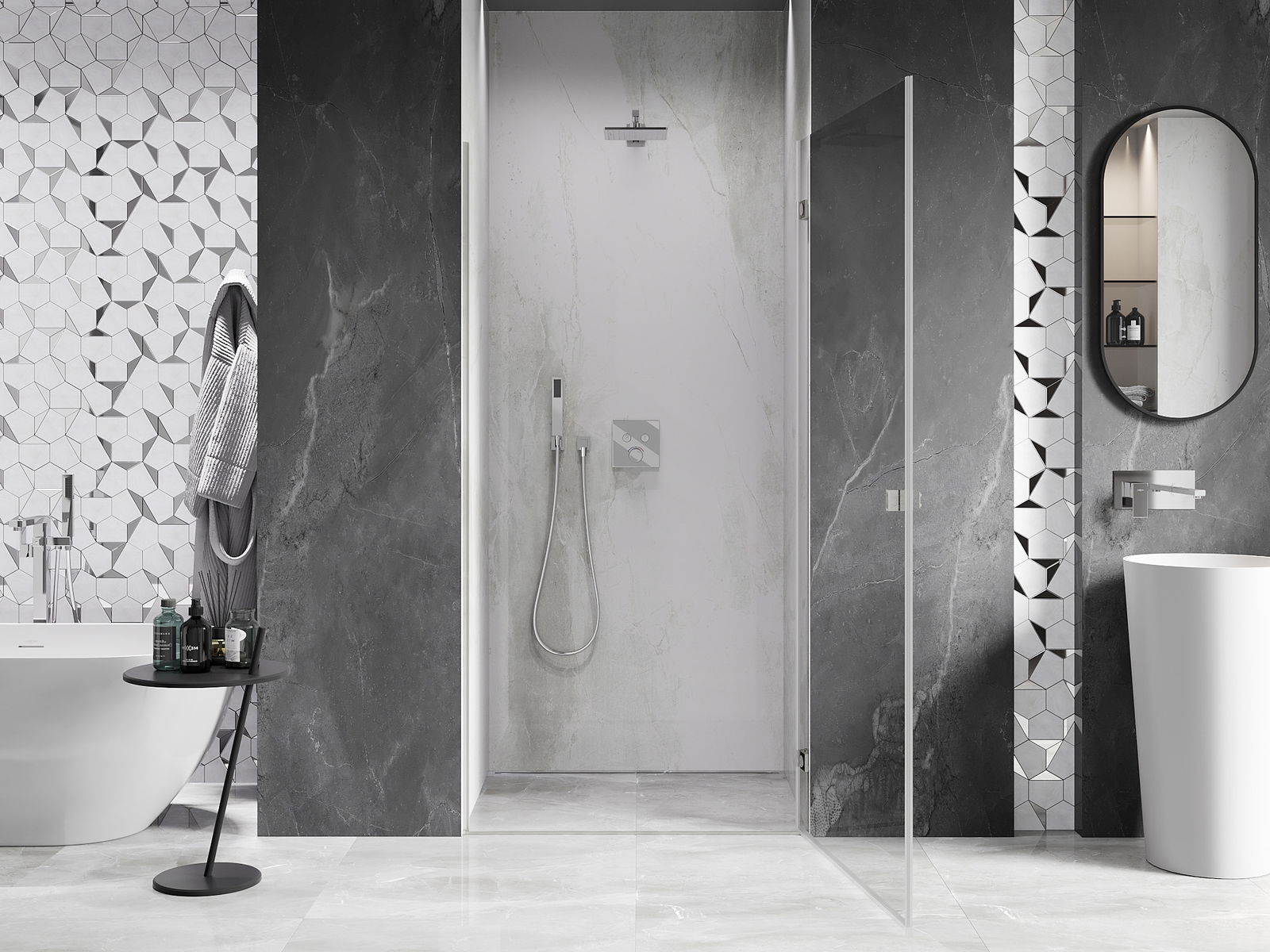 Mexen Lunar-B drzwi prysznicowe uchylne prawe 45 cm, transparent, nikiel szczotkowany - 832-045-000-97-00-P