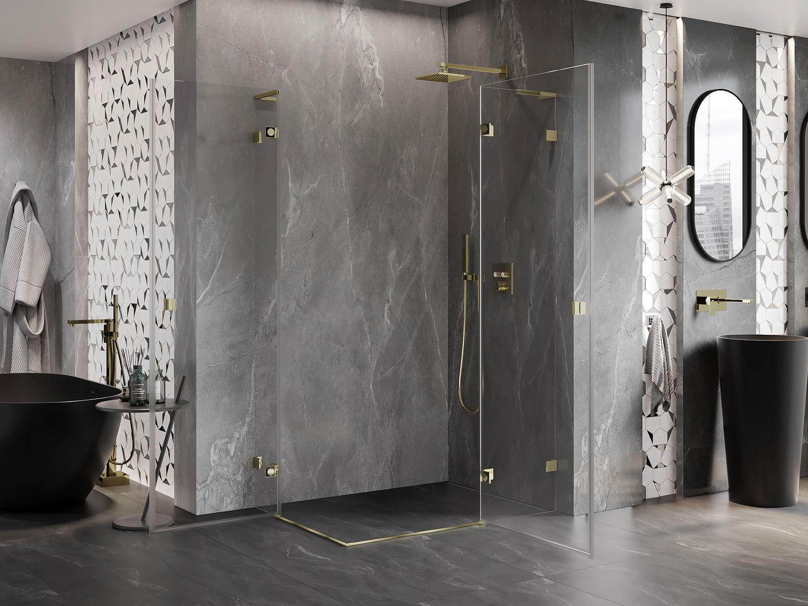 Mexen Lunar L Duo kabina prysznicowa uchylna prawa 90 x 70 cm, transparent, złota - 834L-090P-070L-50-00