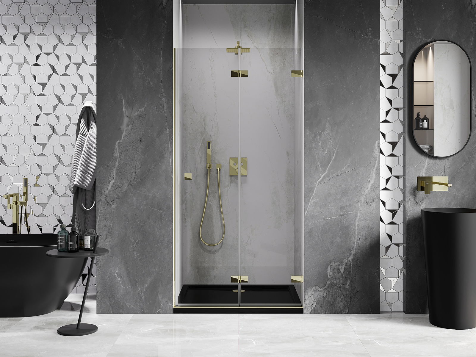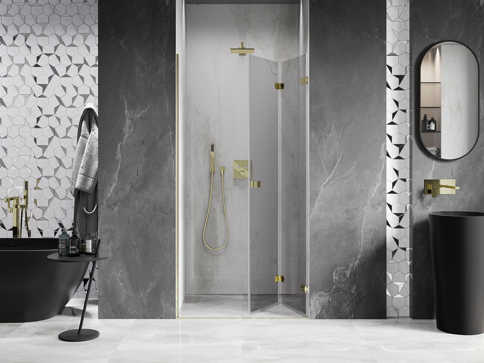 Mexen Lunar-F drzwi prysznicowe składane prawe 55 cm, transparent, złote - 836-055-000-50-00-P