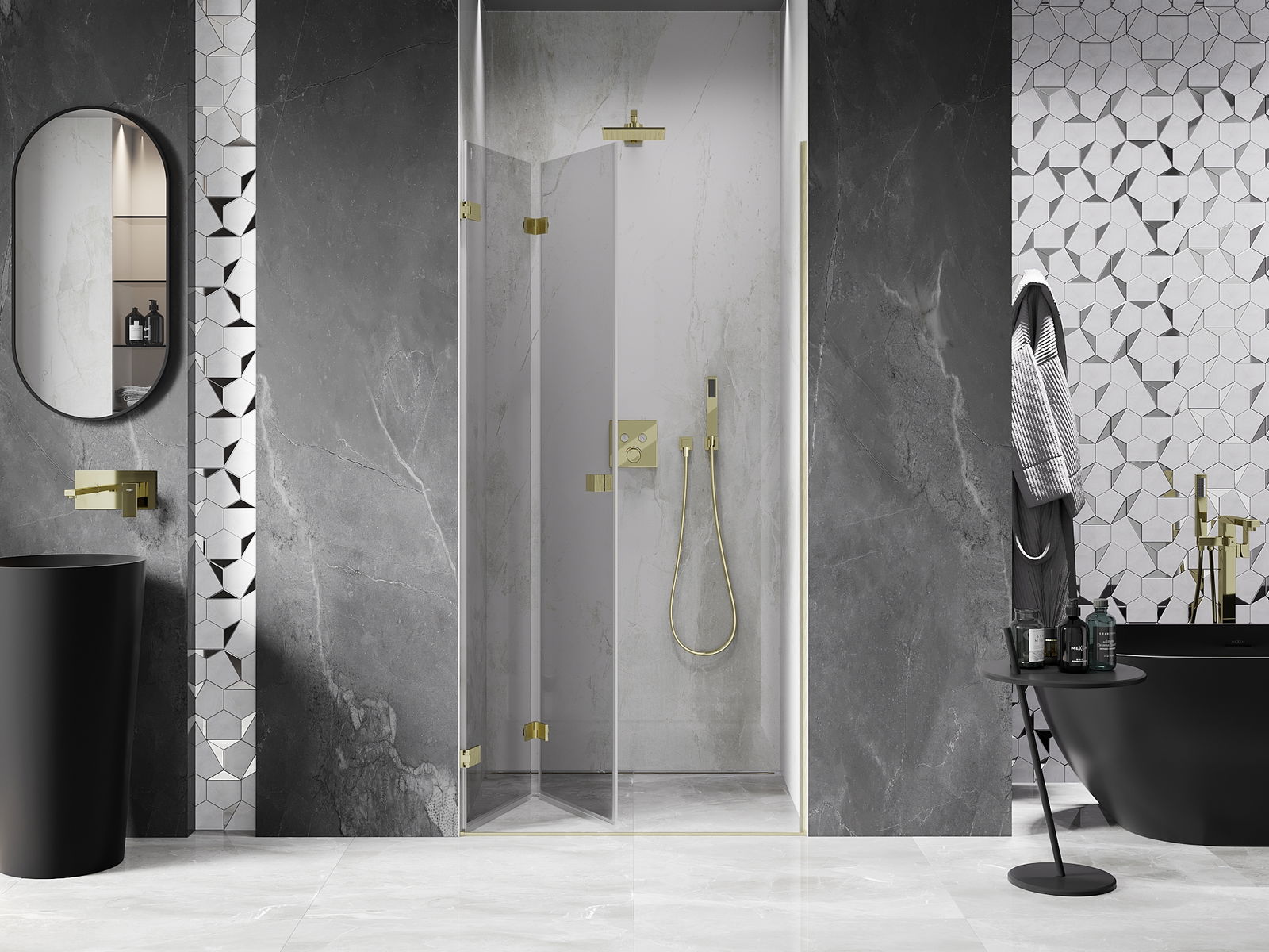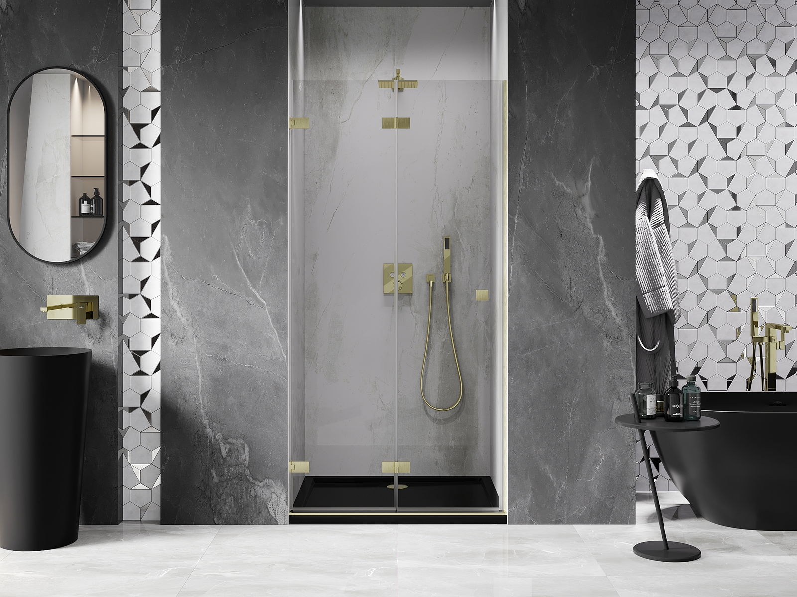 Mexen Lunar-F drzwi prysznicowe składane lewe 50 cm, transparent, złote szczotkowane - 836-050-000-55-00-L
