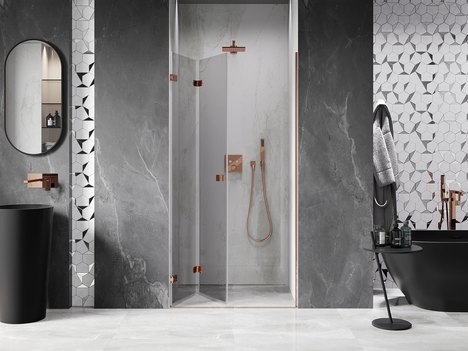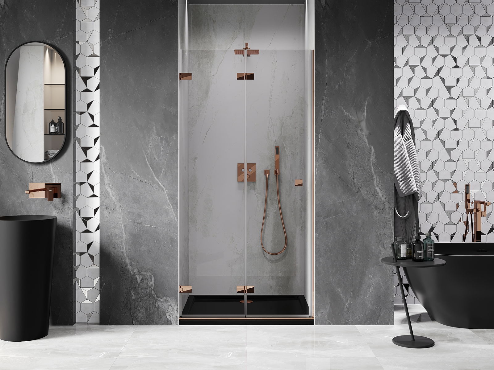Mexen Lunar-F drzwi prysznicowe składane lewe 55 cm, transparent, różowe złoto - 836-055-000-60-00-L