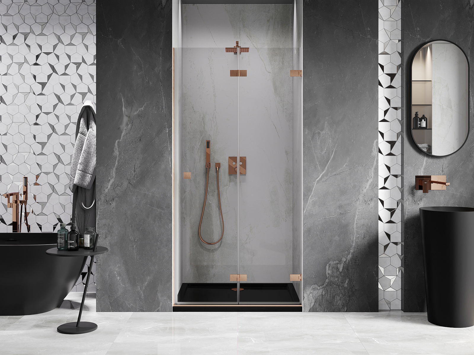 Mexen Lunar-F drzwi prysznicowe składane prawe 55 cm, transparent, miedź szczotkowana - 836-055-000-65-00-P