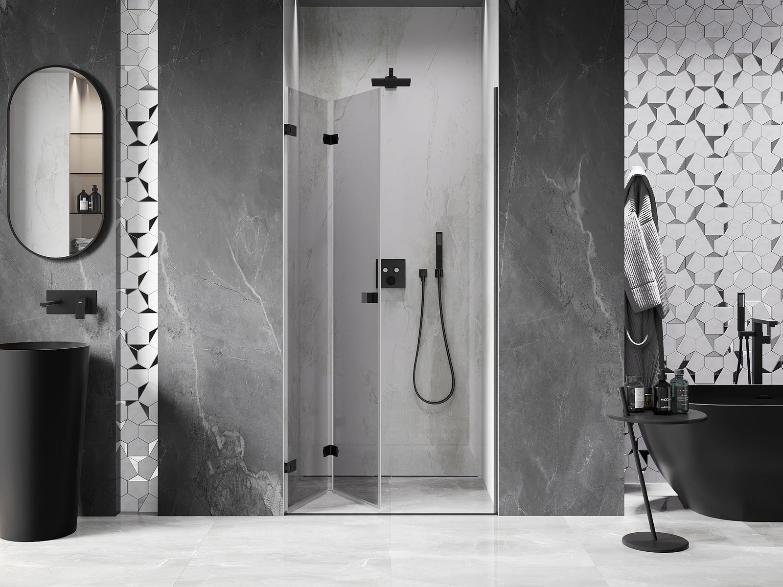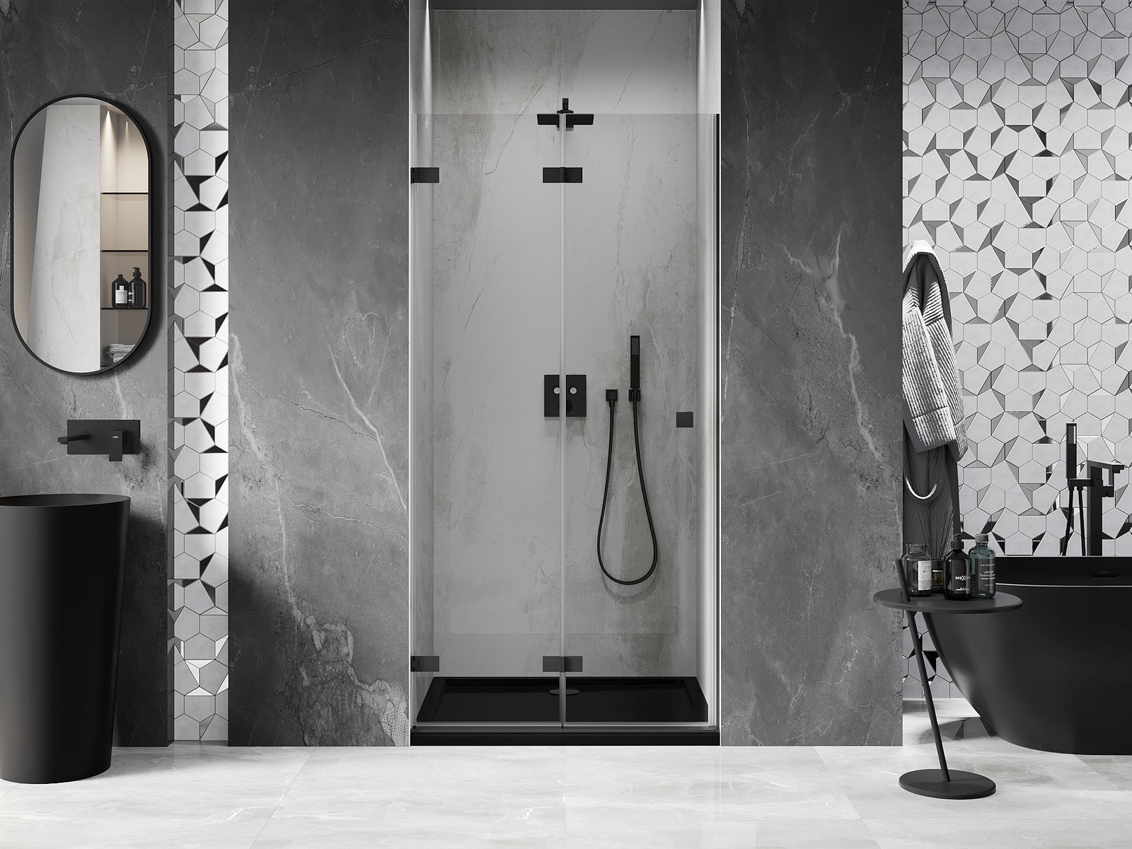 Mexen Lunar-F drzwi prysznicowe składane lewe 55 cm, transparent, czarne - 836-055-000-70-00-L