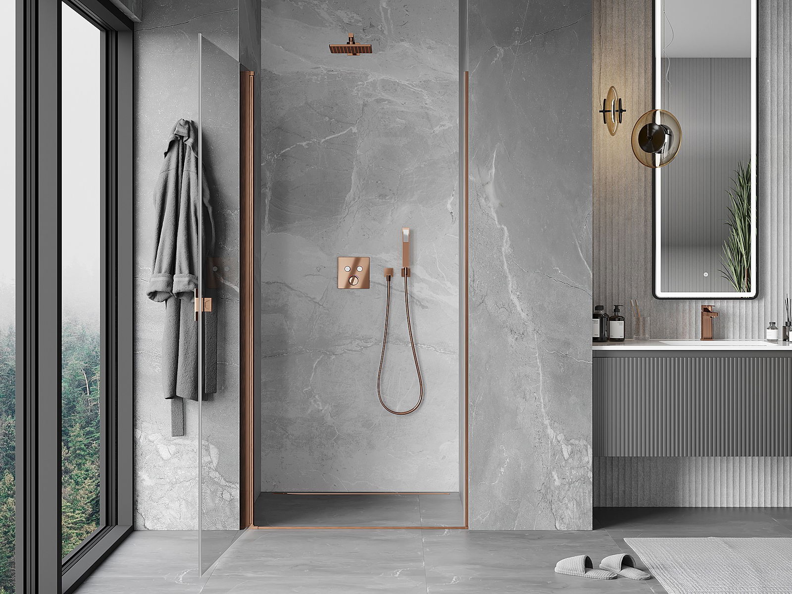 Mexen Mist-B drzwi prysznicowe uchylne 55 cm, transparent, miedź szczotkowana - 8A2-055-000-65-00