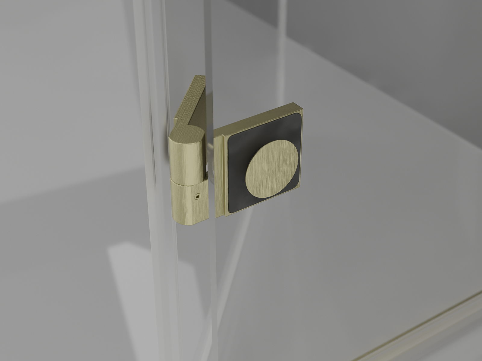 Mosiężne klamry i zawiasy zlicowane z taflą szkła