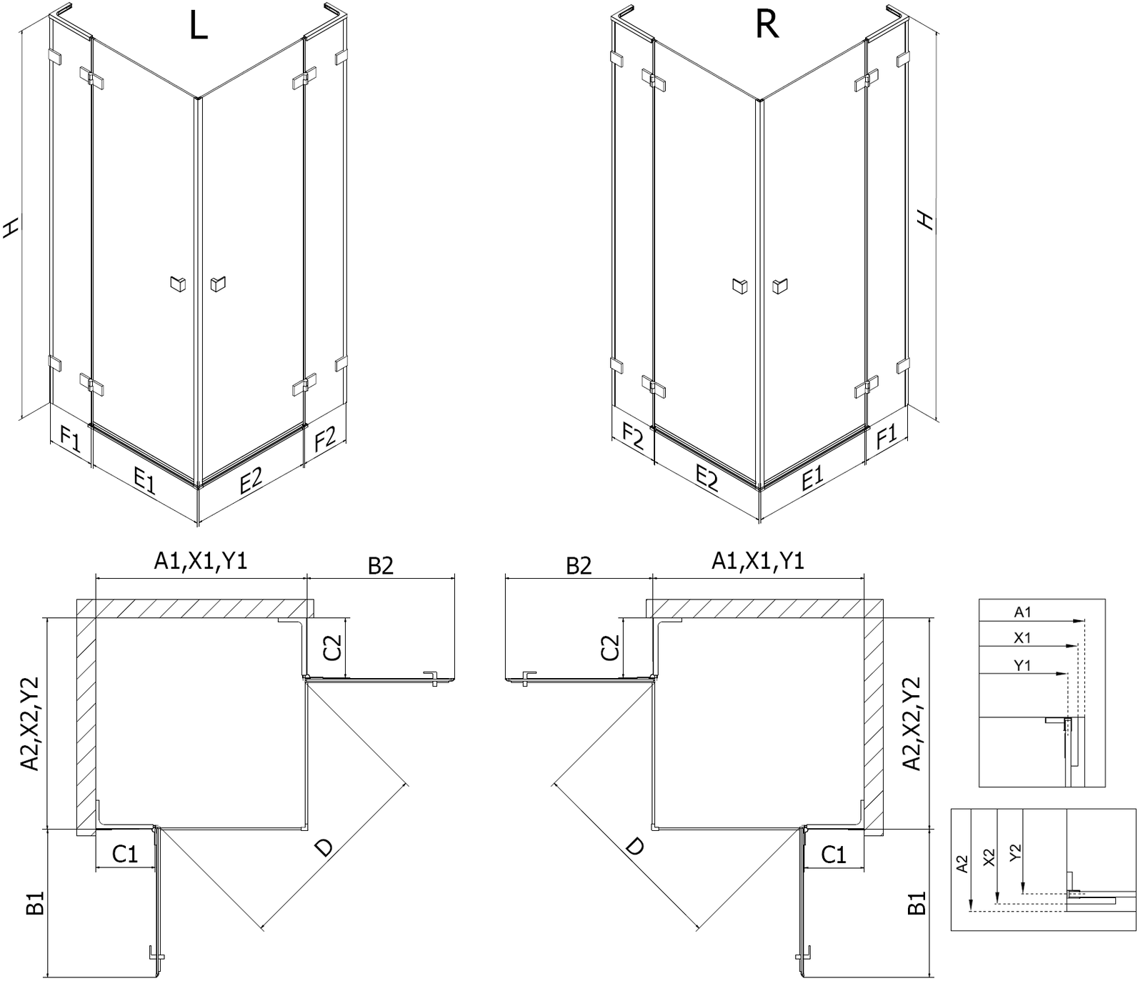 Rozmiar: 95x80 cm (drzwi prawe 95 cm, drzwi lewe 80 cm)