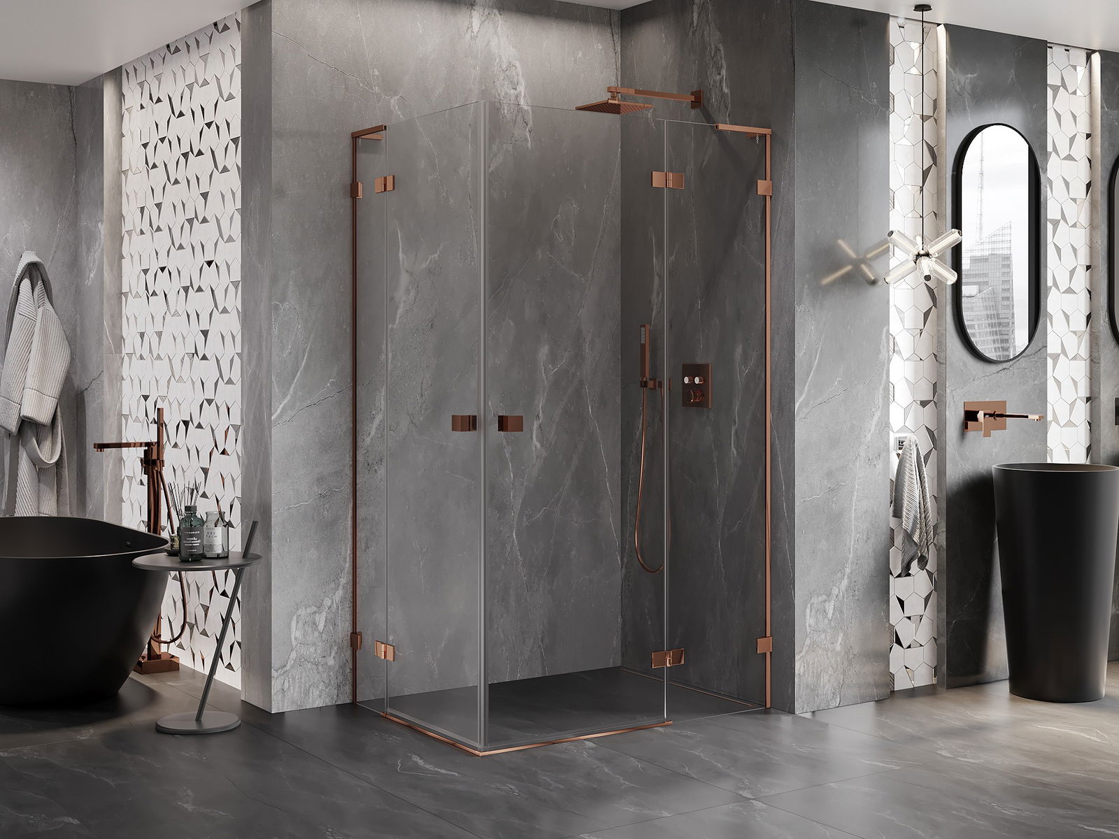 Mexen Lunar L Duo kabina prysznicowa uchylna prawa 90 x 70 cm, transparent, różowe złoto - 834L-090P-070L-60-00