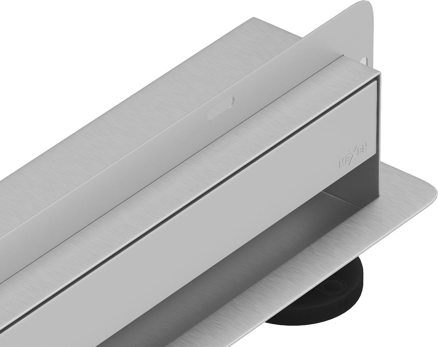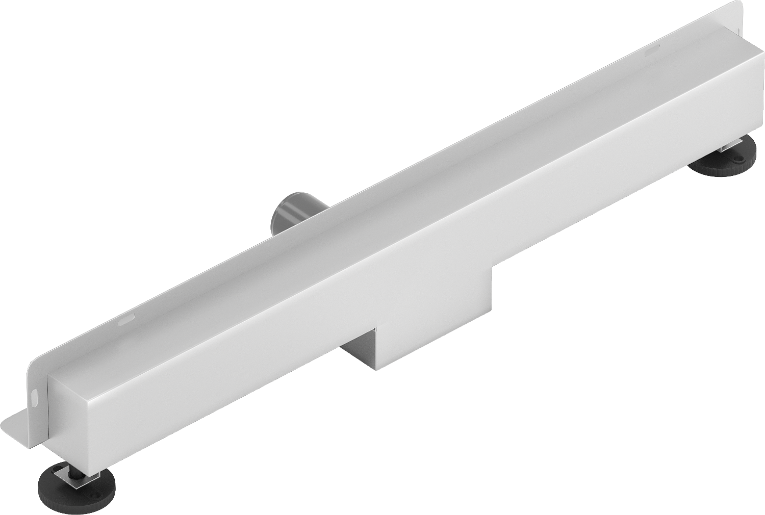 Odpływ jest wyposażony w regulowane nóżki, które umożliwiają dopasowanie odpowiedniej wysokości odpływu oraz wypoziomowanie na nierównej powierzchni. W ten sposób odpływ jest jeszcze lepiej dopasowany do warunków danej łazienki.