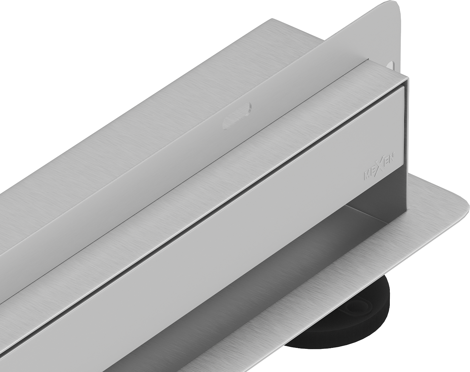 Odpływ jest wyposażony w regulowane nóżki, które umożliwiają dopasowanie odpowiedniej wysokości odpływu oraz wypoziomowanie na nierównej powierzchni. W ten sposób odpływ jest jeszcze lepiej dopasowany do warunków danej łazienki.
